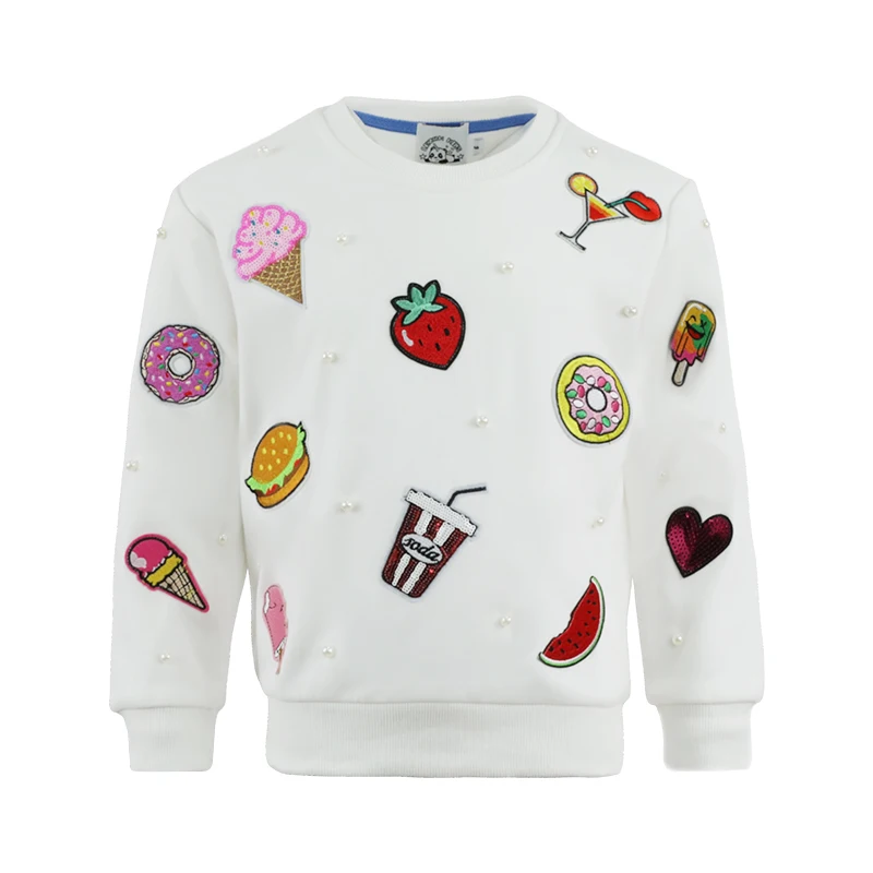 Customized Girls Cotton Sweatshirt Autumn Season Patchwork Round Neck Design with Lining Long